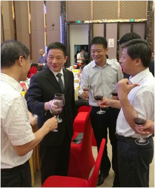 9月26日,蔡甸区人大常委会副主任李玉年在中核国际酒店热情接待了陶盛发一行,双方进行了简短的交流座谈。晚上6点,论坛欢迎酒会在酒店三楼热烈举行,蔡甸区委书记、中法武汉生态示范城管委会主任刘子清向各位嘉宾致以热情洋溢的欢迎辞,并向与会的世界500强及全球知名企业高管发出情真意切的招商推介。陶董事长受邀在宴会主桌与武汉市副市长龙良文、法国总领事馆等领导共同出席酒会。